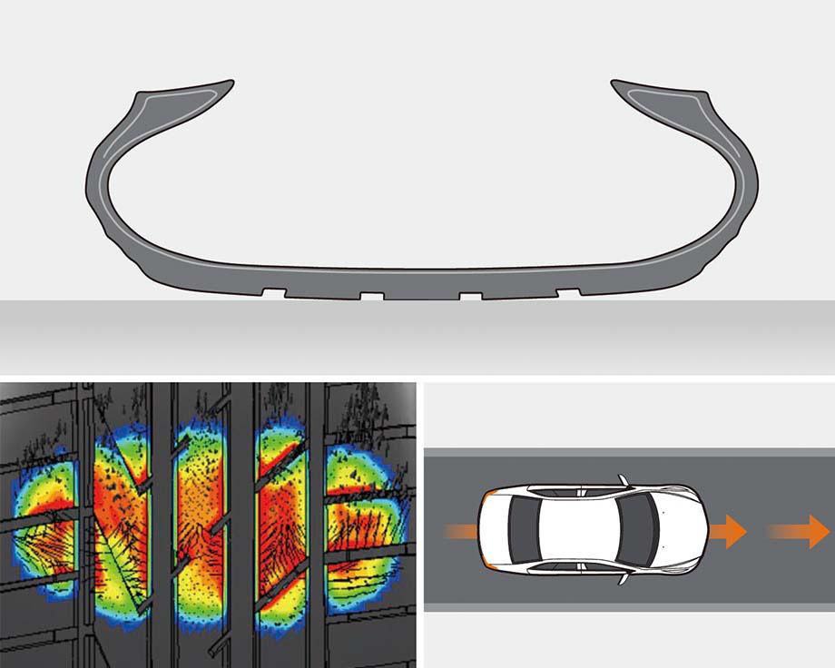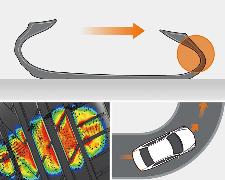 动感的平面设计与胎面花纹相得益彰,打造出胎侧的运动感。空气动感的胎侧设计通过矩形凹槽减少了驾驶过程中的空气湍流,从而使噪音和振动最小化。