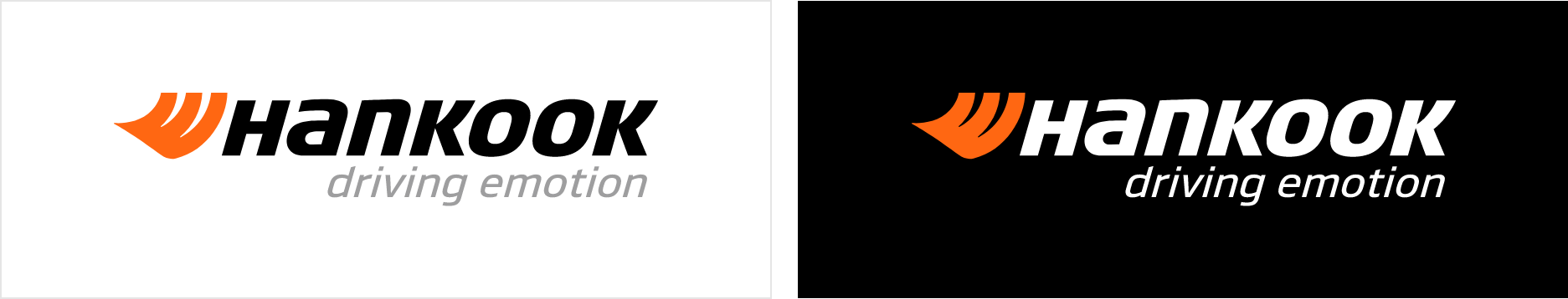 Hankook Tire & Technology의 로고는 타이어 트레드와 다이나믹함을 상징하는 심벌마크와 능동적이고 창의적인 기업의 혁신성을 전달하는 로고타입과 함께 기업 비전인 슬로건을 조합한 형태인 Hankook Driving Emotion으로 사용됩니다.