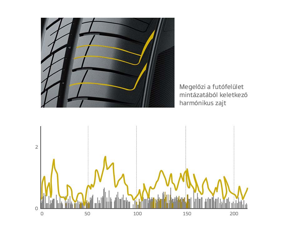 (Foam) : Az abroncs belsejében lévő habszivacs csökkenti az utastérben érzékelhető zajt