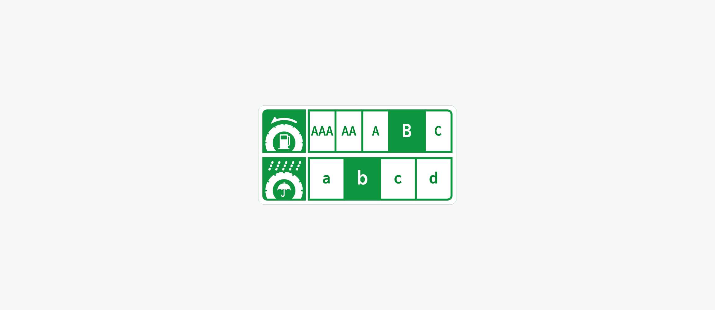 この表示のあるタイヤは、転がり抵抗性能が Bグレード、ウェットグリップ性能が bグレードであることを示します。