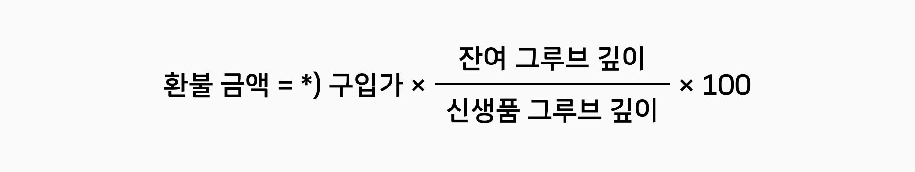- 환불 금액 산정 방식 : 구입가 대비 잔여 그루브 깊이 비율로 환불 금액 산정
