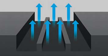 Extremely short braking distances on wet and dry surfaces by optimizing balance of the tread block stiffness.