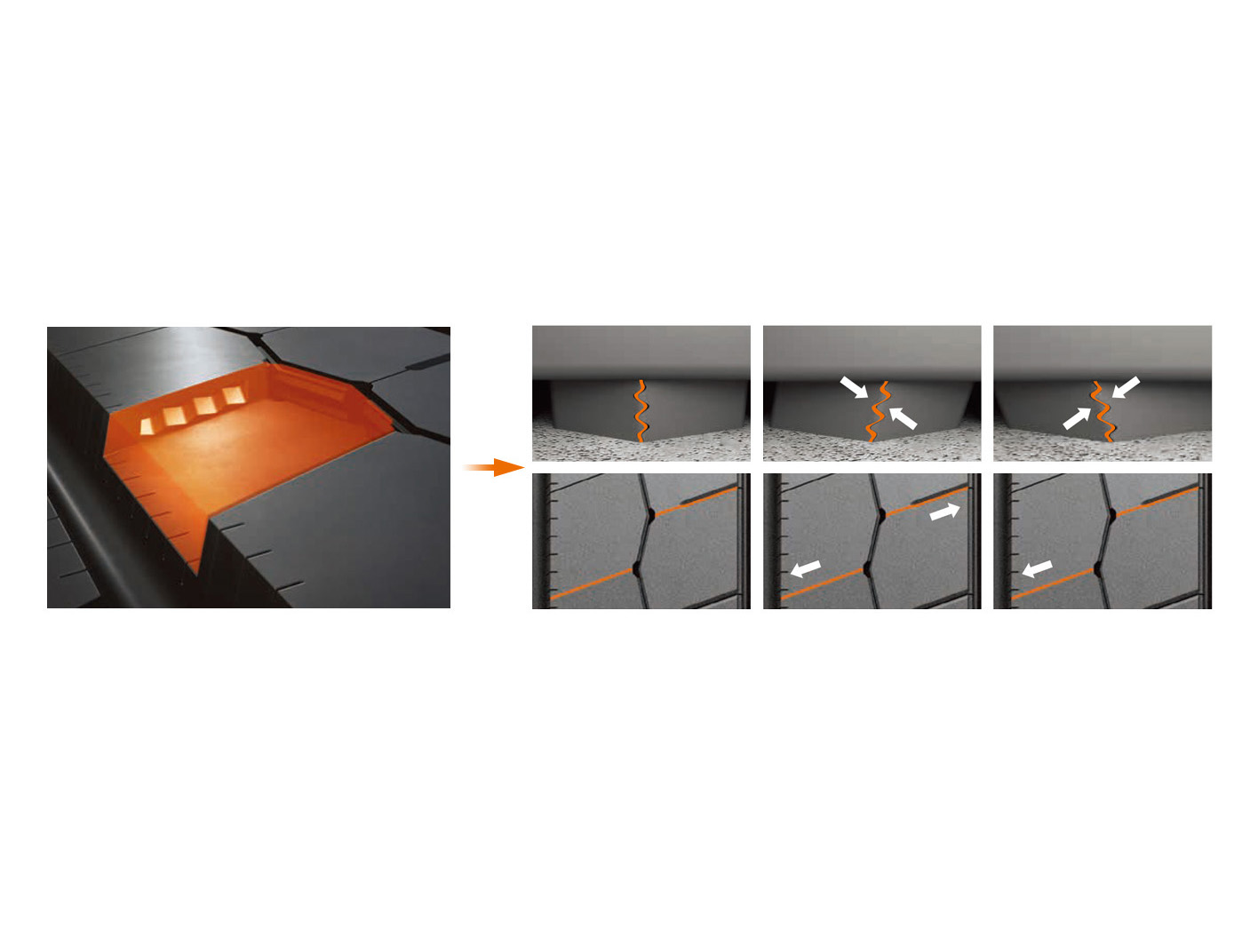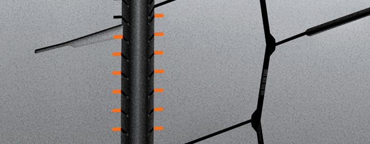 SCCT Technology is designed to reduce profile deformation. If the carcass profile is not kept constant, the internal force on the carcass will be concentrated on a specific point, belt edge or carcass turn up edge. In contrast, SCCT Technology controls the dispersion of internal force for better durability.