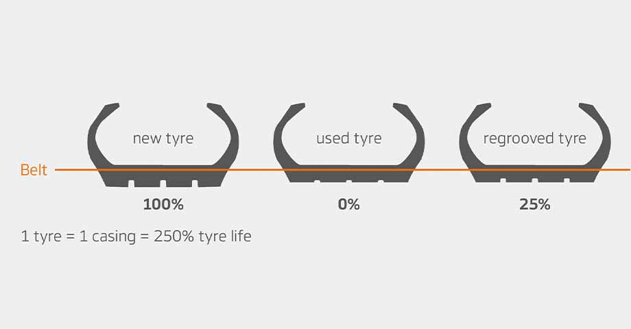 Hankook premium tyres are manufactured with robust carcass design and additional regroove tread rubber to deliver a second regrooved tyre life and a third retread life.