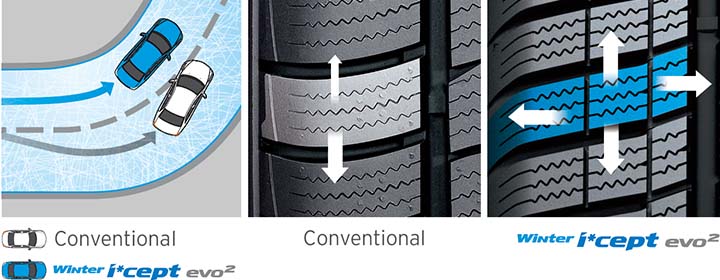 Applying two wide grooves in a straight direction ensures a stable driving performance on snowy and wet roads. The wider groove helps to prevent hydroplaning and vibration during the drive.